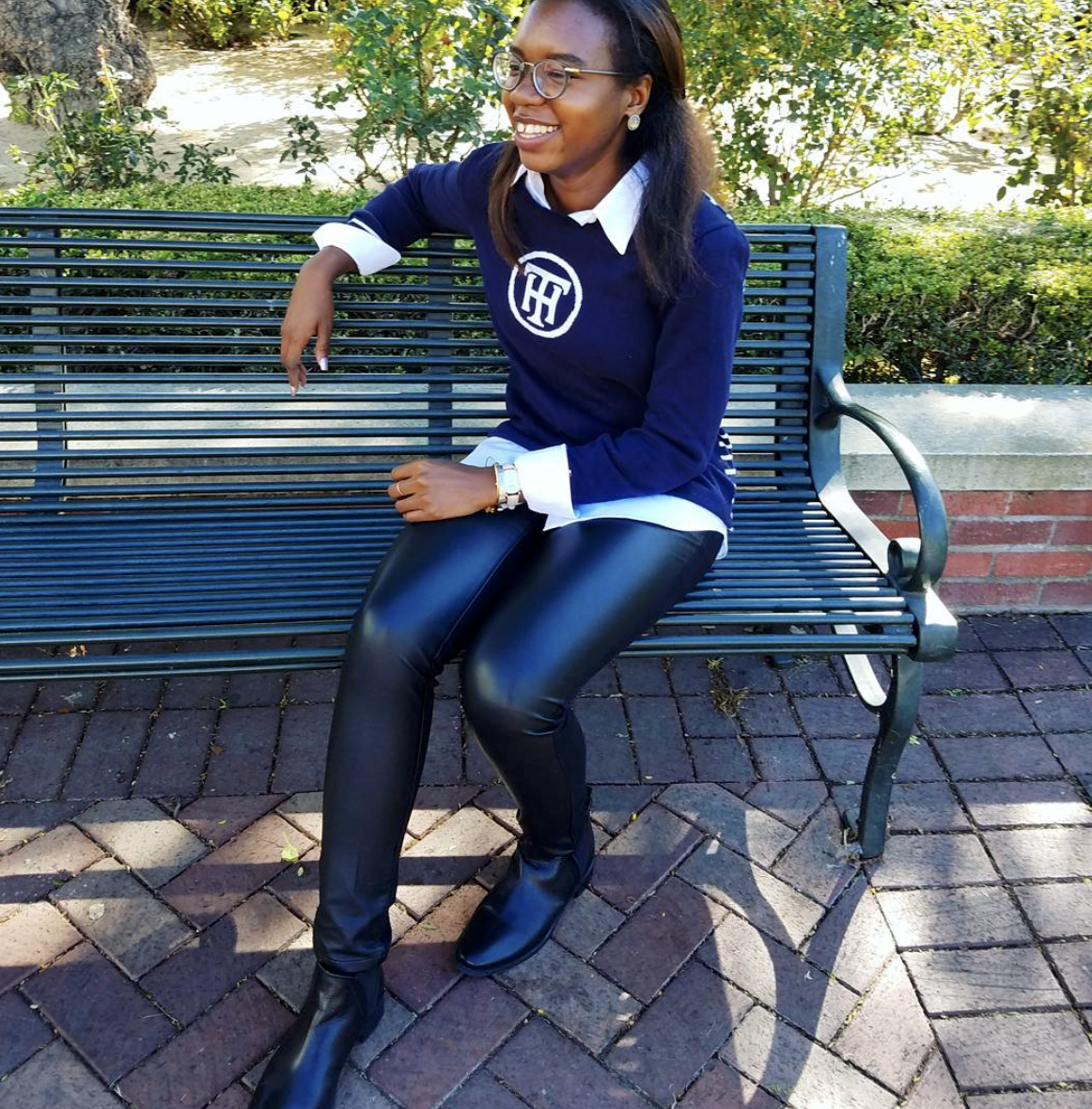 I love the look of layering collared shirts with sweaters – it’s the perfect combination of preppy, professional and put together. If you have plans or meetings after hours, but don’t want your look to be too ‘corporate,’ I recommend incorporating leather into your outfit for your next happy hour.